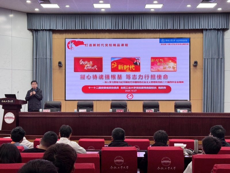 开班仪式结束后,合肥工业大学党校原常务副校长姚跃传作了题为《深入学习贯彻习近平新时代中国特色社会主义思想和党的二十届四中全会精神》的报告。报告阐述了中国特色社会主义新时代的时代背景与历史方位,解读了习近平新时代中国特色社会主义思想的科学体系和党的二十届四中全会精神。姚跃传表示,学员们要以习近平新时代中国特色社会主义思想为引领,深刻领悟党的二十届四中全会精神,坚定对习近平新时代中国特色社会主义思想的忠诚信仰、对中国特色社会主义的坚定信念、对中国式现代化的坚强信心,在推进强国建设、民族复兴伟业中奋力书写挺膺担当的青春篇章。